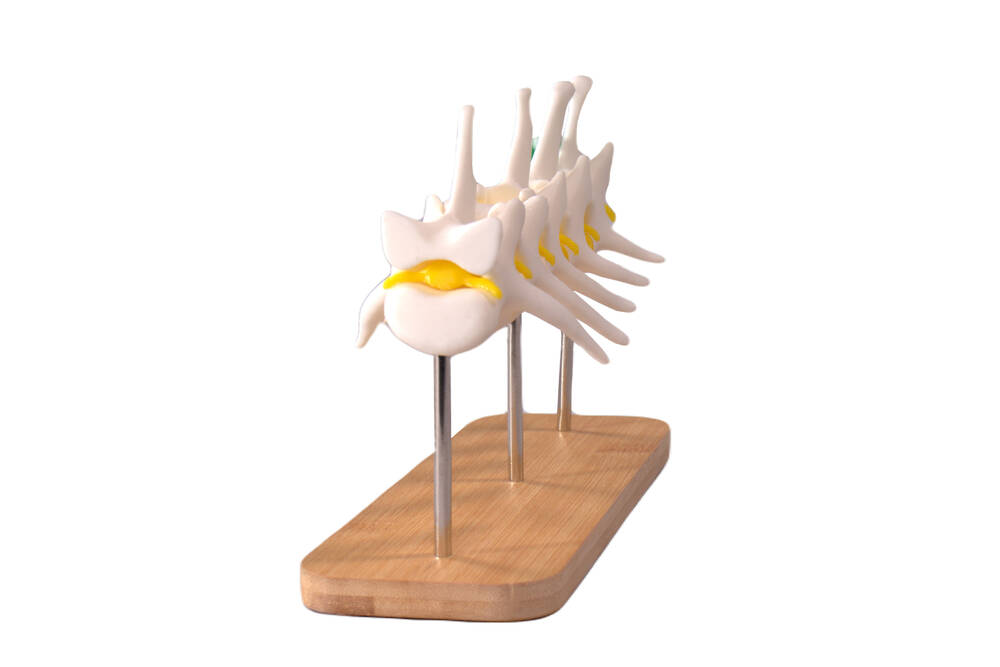 • Демонстрація хірургічних операцій: модель наочно показує 3 головні операції на хребцях: дорсальна ламінектомія, геміламінектомія та фіксація транспедикулярною системою.