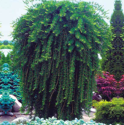Плакуча форма японської модрини Larix kaempferi stiff weeper- дуже мальовниче і повільноростуче дерево, нерегулярно конічне, з нависаючими вершинами і гілками. Іноді гілки доростають до землі і стеляться по ній. Ця декоративна форма виникла в кінці позаминулого століття в Німеччині і дуже часто використовується ландшафтними майстрами всього світу.