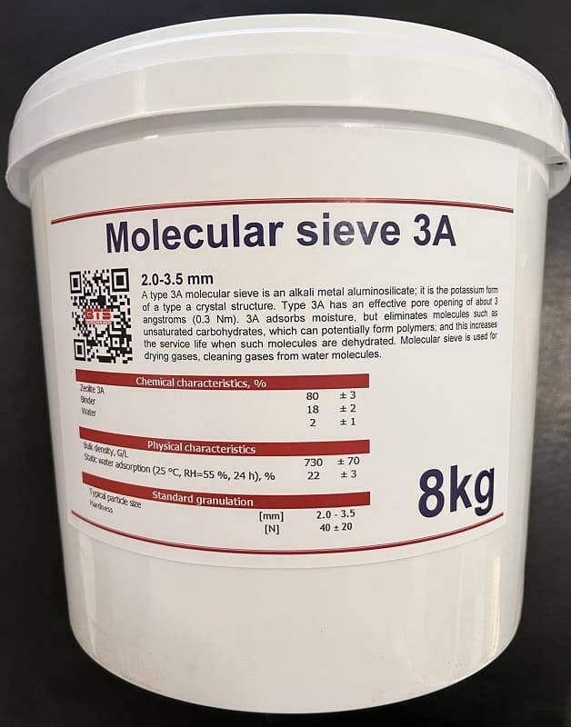 Молекулярне сито 3A, 2,0-3,5mm Molecular Sieve, упаковка 8кг