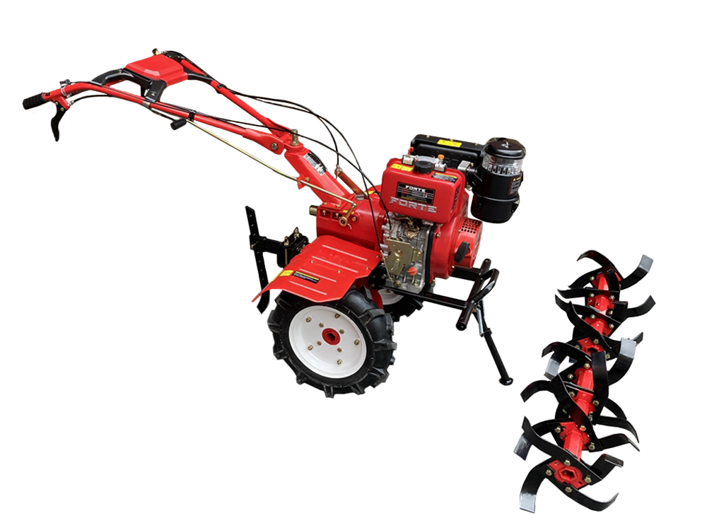 Мотоблок  дизельний Forte 1050 NEW колесо 10" —   призначений для культивації грунту. Він є незамінним помічником як фермерів, і звичайних власників ділянок. Розбірна фреза 2+1+1 (32 ножа) та колеса в комплекті