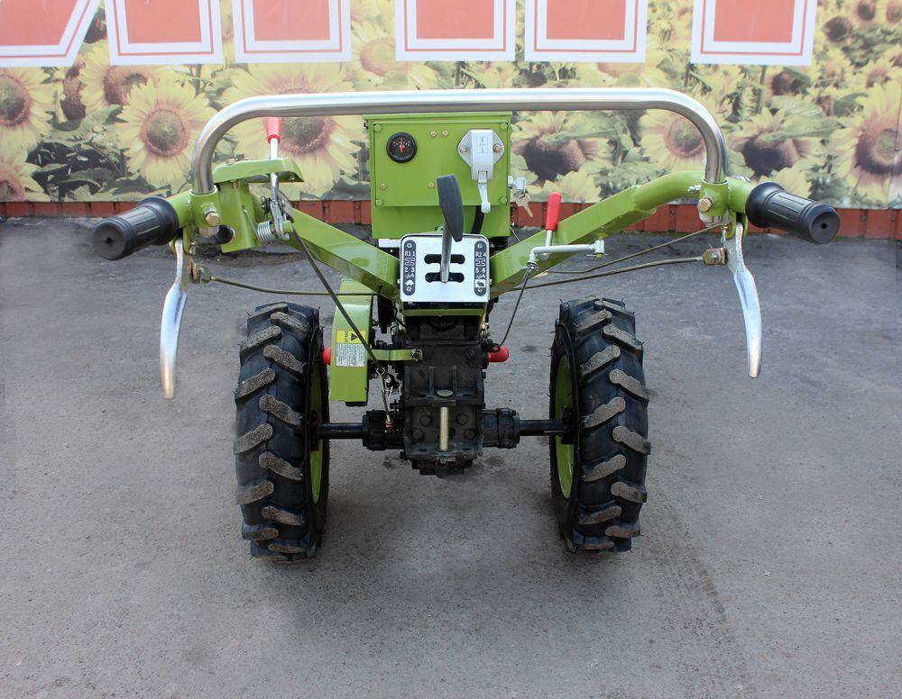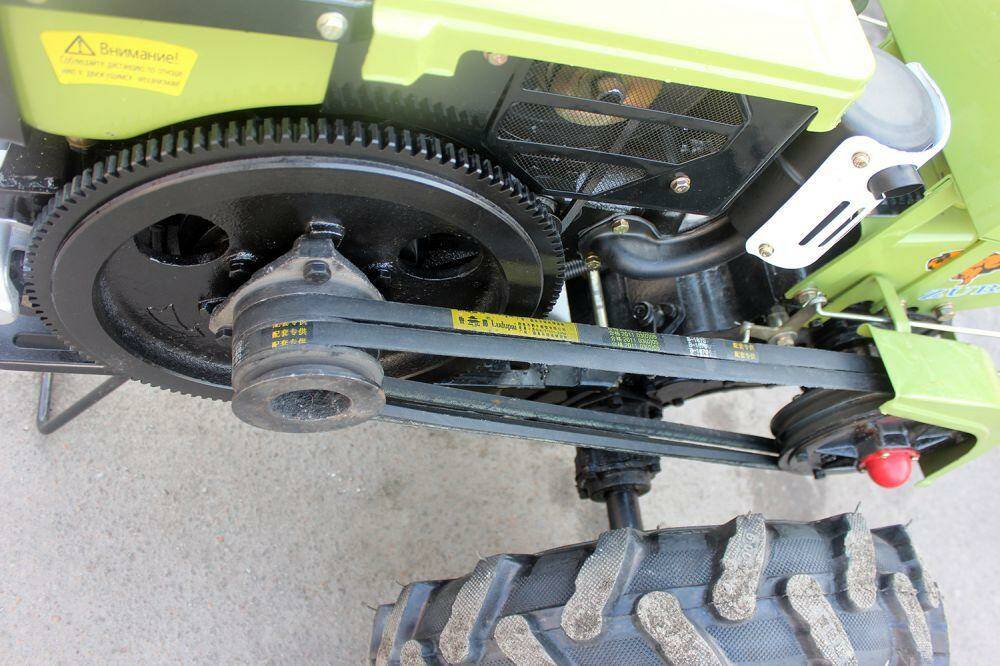 Також є задній шестерний вал відбору потужності для фрези і передній ремінний для підключення роторної сінокосарки та вібраційної картоплекопалки. За допомогою причепа можна перевозити вантажі до 500 кг.