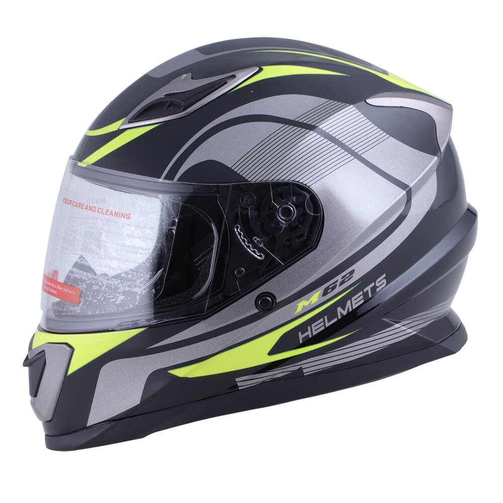 Опис мотошолома Мотошлем FORTE М62 Чорно-жовтий М Мотошолом FORTE — засіб пасивного захисту голови водія при їзді на мотоциклі чи моторолері. Крім захисту голови у разі аварії, шолом оберігає від зустрічного вітру, води, каміння, комах та пилу. Модель виконана з ABS пластику, з'ємна підкладка