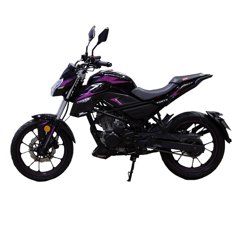 Опис Мотоцикл Forte PUMA Фіолетовий Дорожній мотоцикл Forte PUMA Фіолетовий має 4-тактний, 1-циліндр двигун з балансом валом.   Потужність двигуна 11,5 кВт/19,7 л.с. Встановлено повітряну систему охолодження. Максимальна швидкість мотоцикла – 106 км/год. Особливості моделі: двигун з балансувальним валом передні гідравлічні дискові гальма з вентиляцією LED фара та поворотники сучасні легкосплавні диски електронна панель приладів