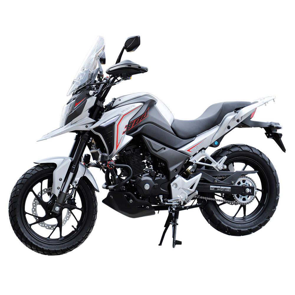 Мотоцикл Forte RV300 чорно-сірий Мотоцикл дорожній, двомісний  FT300-R1  Forte  - потужна модель з 4-тактним, карбюраторним двигуном  SOHC-2V  об'ємом 270,2 см3 173FMN Особливості: масляне охолодження двигун з балансувальним валом передні та задні гідравлічні дискові гальма з вентиляцією перевернута вилка спицеві диски захист двигуна LED фара та поворотники електрона панель приладів подвійна вихлопна система Вітрове скло Захисні бокові дуги з додатковими LED прожекторами