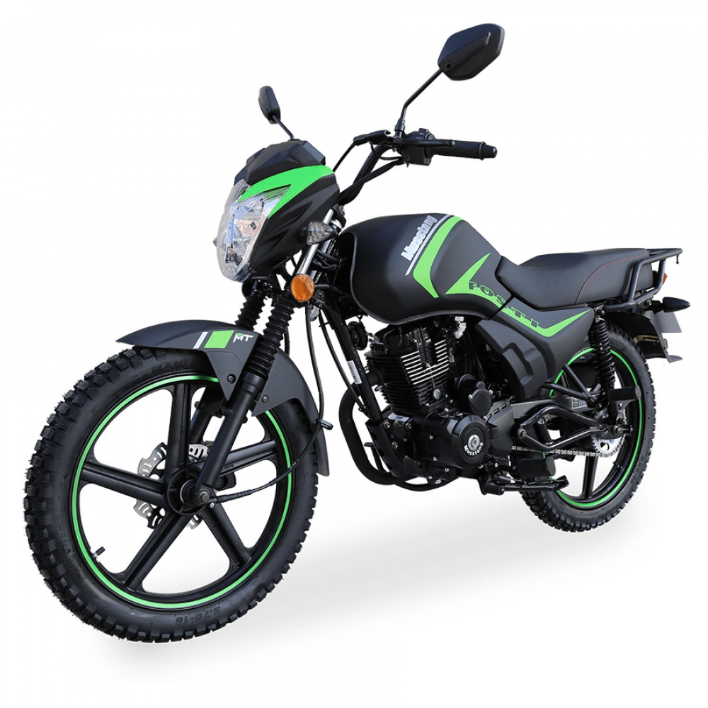 Мотоцикл MUSSTANG Fosti модель, що поєднала у собі класичну форму мотоцикла високої надійності, простоти конструкції та легкість в обслуговуванні. Двигун об'ємом 150 см3 вертикальним двигуном із потужністю 12 кінських сил. Максимальна швидкість до 99 км/год. Розмір шин передні/задні: 2.50-18 / 2.75-18.