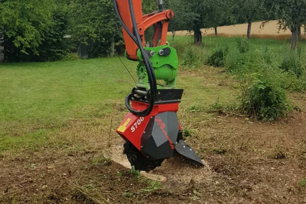 Мульчер подрібнювач пнів для екскаватора Prinoth BEAVER S700e — ефективне рішення для розчищення ґрунту від масивних пнів і підщеп будь-якого діаметра. Агрегат з потужним абразивним диском, що працює у маятниковому русі, глибоко фрезерує деревину. Розроблений для екскаваторів вагою 6–12 тонн з подовженою стрілою.