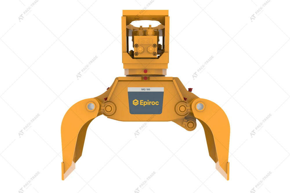 Мультигрейфер Epiroc MG100 на екскаватор. Вага машини-носія — 0,7-1,2 т. Мультигрейфери Epiroc відмінно впораються не тільки з перевантаженням і сортуванням матеріалів, а й з розбиранням кладки або конструкцій з деревини. Мультигрейфери серії MG здатні з максимальною точністю обробити будь-який матеріал. Вони відрізняються надійним захватом та високим зусилля протягом усього циклу роботи.