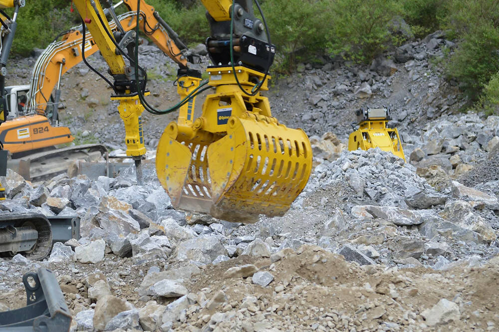 Мультигрейфер Epiroc MG200 на екскаватор. Вага машини-носія — 1,2-3 т. Мультигрейфери Epiroc відмінно впораються не тільки з перевантаженням і сортуванням матеріалів, а й з розбиранням кладки або конструкцій з деревини. Мультигрейфери серії MG здатні з максимальною точністю обробити будь-який матеріал. Вони відрізняються надійним захватом та високим зусилля протягом усього циклу роботи.