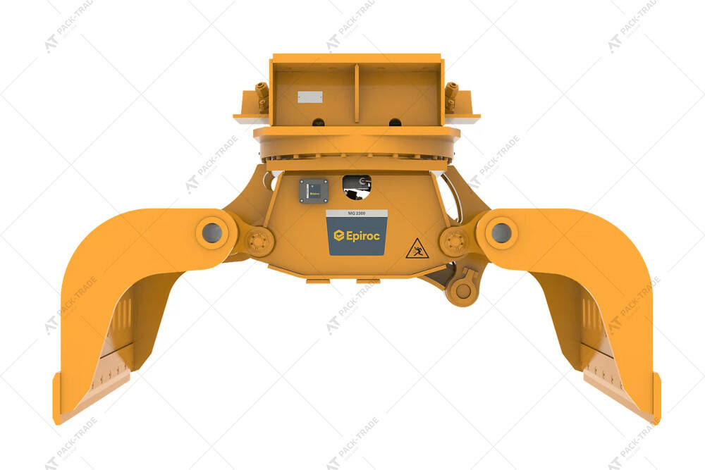 Мультигрейфер Epiroc MG2300 на екскаватор. Вага машини-носія — 25-38 т. Мультигрейфери Epiroc відмінно впораються не тільки з перевантаженням і сортуванням матеріалів, а й з розбиранням кладки або конструкцій з деревини. Мультигрейфери серії MG здатні з максимальною точністю обробити будь-який матеріал. Вони відрізняються надійним захватом та високим зусилля протягом усього циклу роботи.