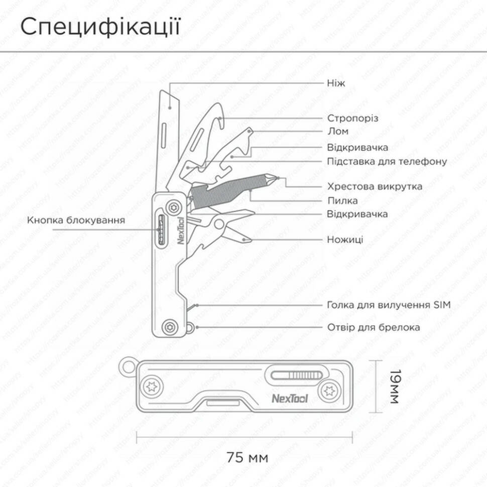 Завдяки мінімальній вазі — лише 88 г — мультитул від NexTool підходить для носіння на ключах або в кишені, забезпечуючи швидкий доступ до необхідних інструментів у повсякденних та екстремальних ситуаціях.