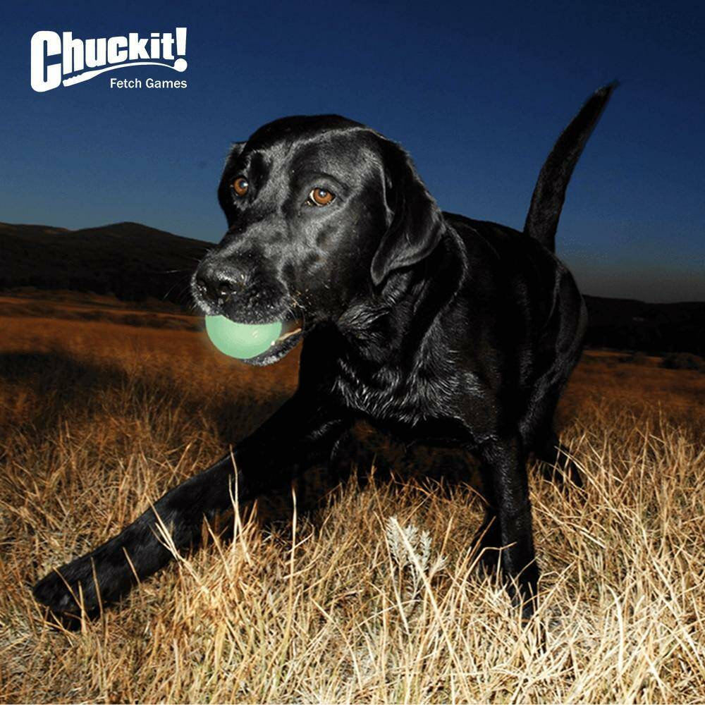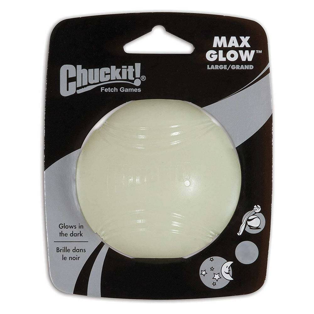 Іграшка CHUCKIT! MAX GLOW BALL – для собак усіх порід. М'яч для гри, що світиться в темряві, не вимагає батарейок. Щоб зарядити його, потрібно потримати на яскравому світлі 5-10 хвилин, наступні 20-30 хвилин м'яч світитиметься сам (без батарейок або підключення до мережі). Має унікальну дизайнерську форму, що дозволяє собаці зручно брати її до пащі.
