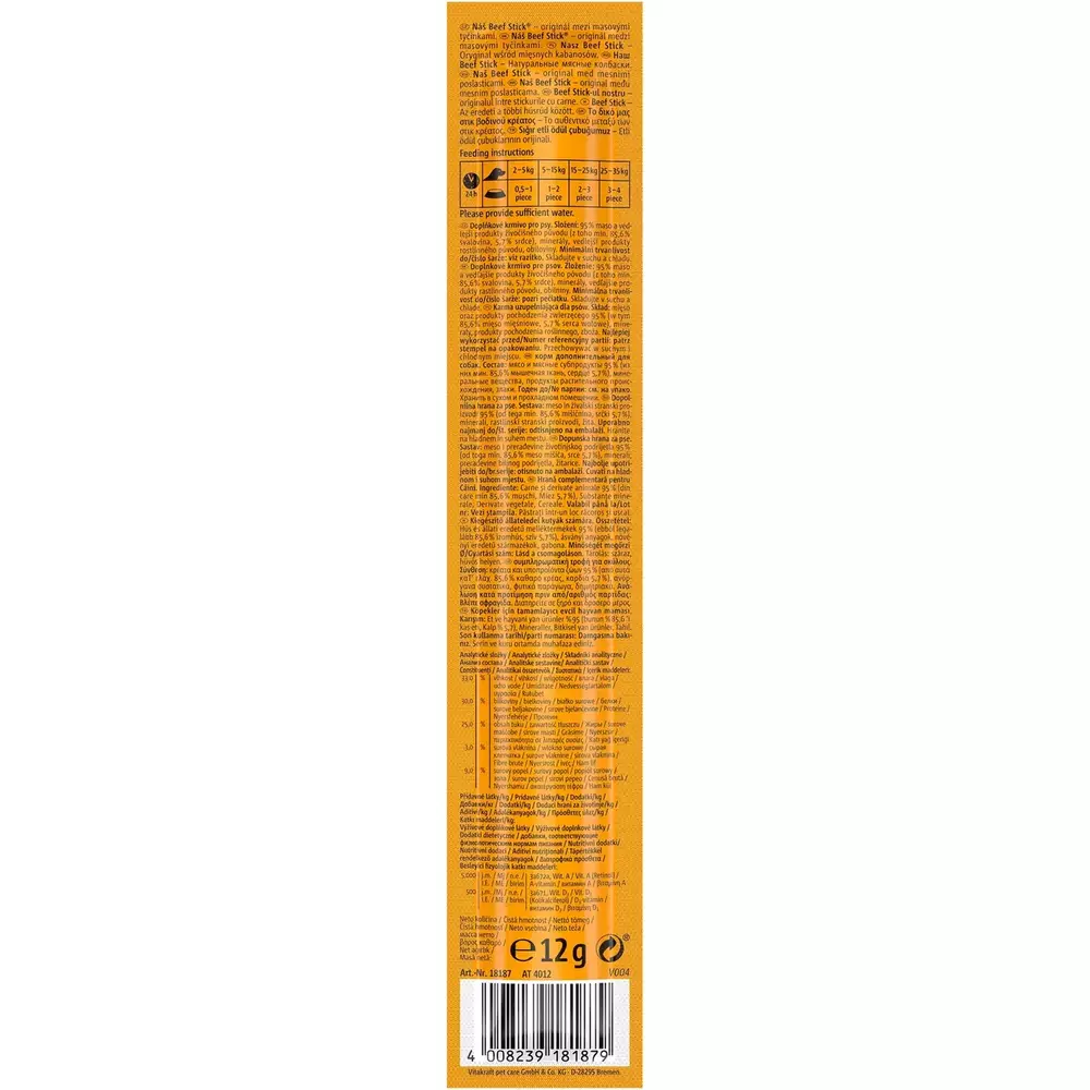 М'ясна паличка для собак Вітакрафт Vitakraft Beef Stick Original ласощі з яловичим серцем, 12 г