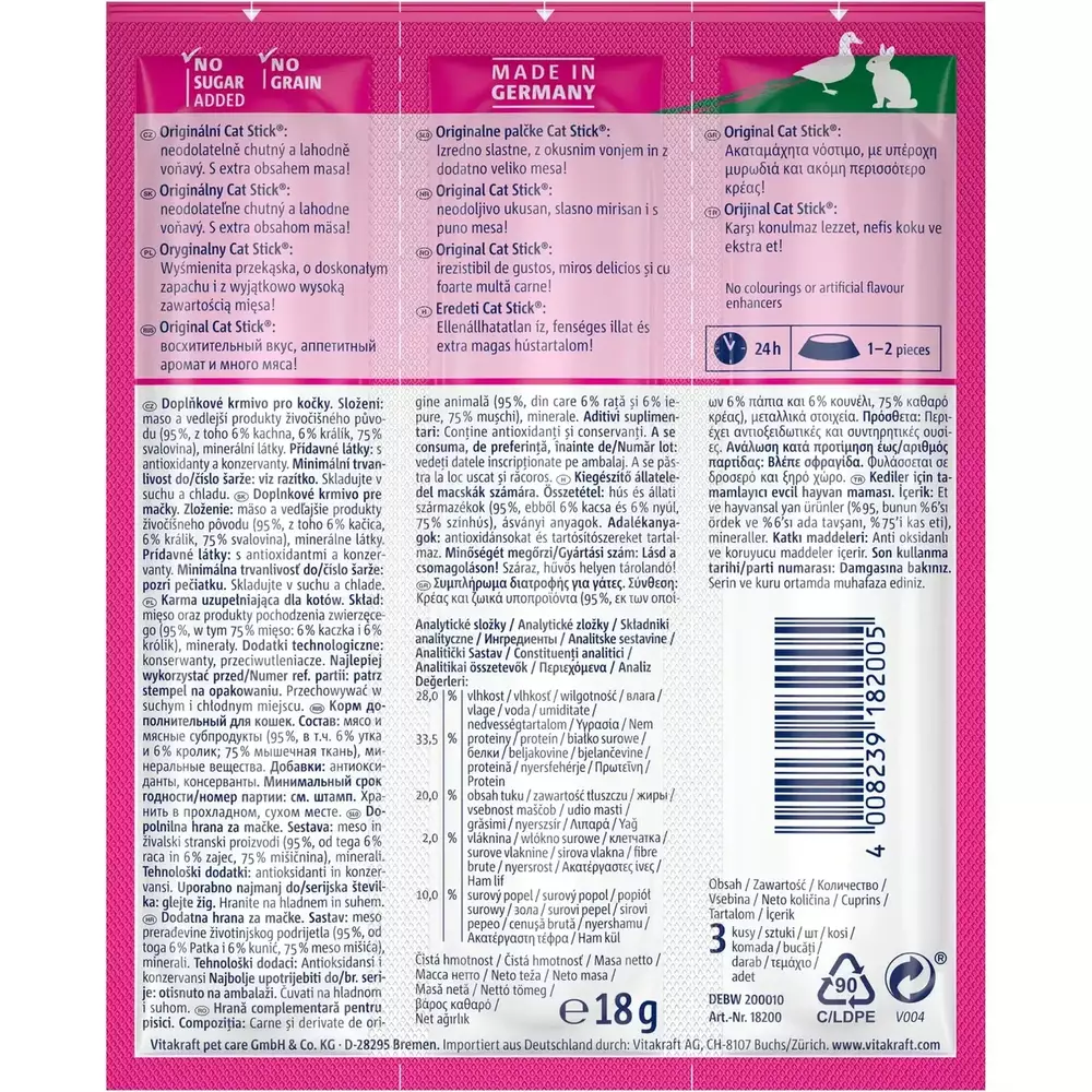 М’ясні палички для котів Вітакрафт Vitakraft ласощі з качкою та кроликом, 3 шт х 6 г