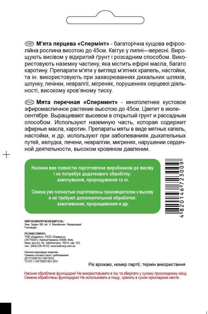 М'ята Спермінт, 0,1 г, Садиба Центр
