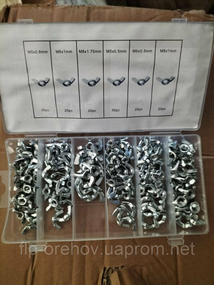 Набір гайок барашок 150 шт. 6 різновидів від М5х0, 8 мм-М8х1мв наборі такі розміри: