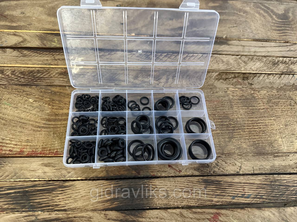 Набір гумових ущільнювальних кілець — 225 шт Масло- та водостійкі, у коробці з відділеннями
