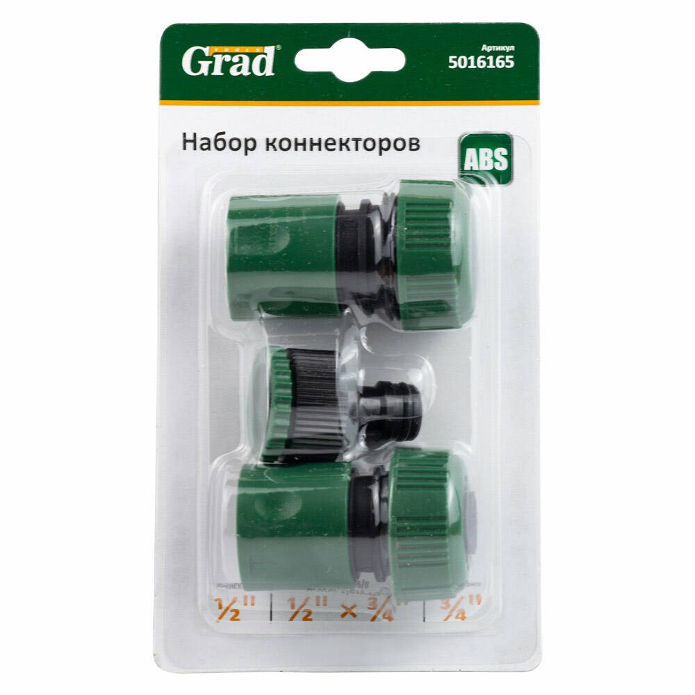 Набір конекторів 1/2" + адаптер в/р 1/2"×3/4" для шланга 3/4" (ABS) GRAD (5016165) дозволяє зібрати лінію поливу і підключити її до водопровідної труби або крану.