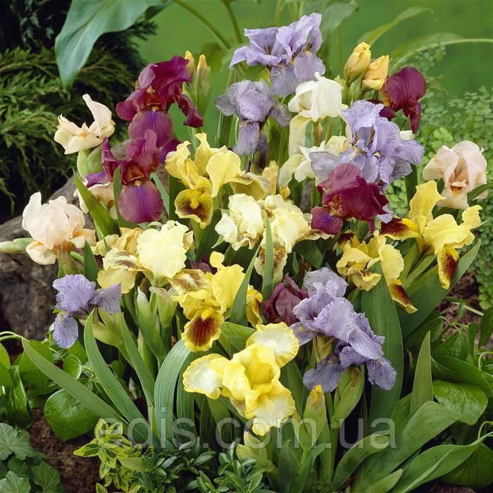 Самі низькорослі сорти бородатих ірисів для оформления кам'янистих гірок, переднього плану сонячних квітників, бордюрів садових доріжок і контейнерів. Висота 15-35 см. В набір входять 10 саджанців, при цьому набори складаються з більш ніж 50-ти сортів, тобто в різних наборах не всі сорти повторюються.