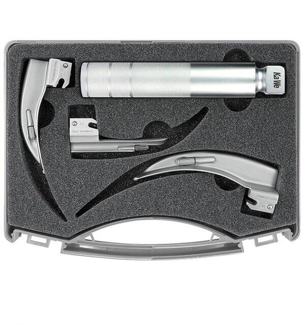 KaWe Pediatric Laryngoscope Set — це педіатричний ларингоскопічний набір, створений для безпечної та ефективної інтубації дітей різного віку. Універсальна комплектація з 1 рукоятки та 3 клинків Miller C і Macintosh C забезпечує точну візуалізацію дихальних шляхів і комфорт лікаря під час роботи.