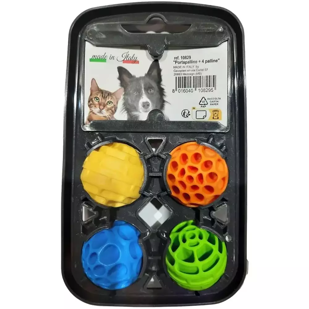 Набір пластикових м'ячів Georplast з тримачем для собак і котів Nebula (4 м'ячі) 18х11х4 см