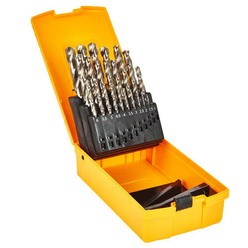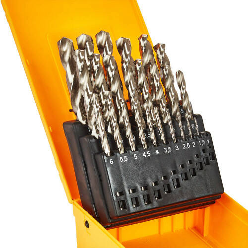 До набору входять 25 свердел із діаметрами від 1 мм до 13 мм із кроком 0,5 мм, що дає можливість вибору оптимального розміру для виконання конкретних завдань. Завдяки циліндричному хвостовику свердла сумісні з більшістю електроінструментів.