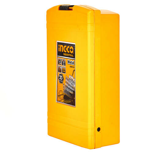 Набір свердел по металу 25 шт. 1–13 мм INGCO AKD1251 INDUSTRIAL — це професійний комплект, призначений для якісного свердління металевих поверхонь. Завдяки виготовленню зі швидкорізальної сталі марки M2 (HSS M2), свердла відзначаються високою твердістю, стійкістю до зношування та довговічністю навіть при інтенсивному використанні.
