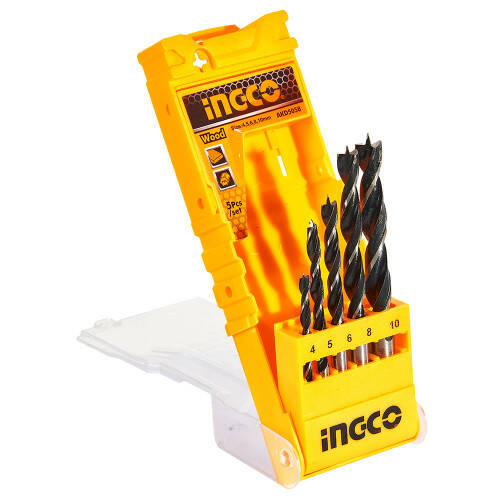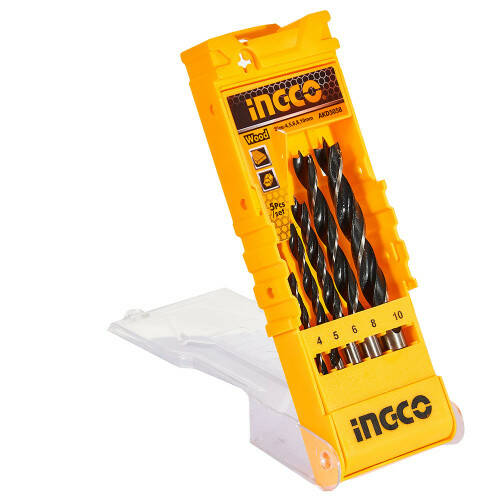 Набір свердел по дереву 5 шт. 4–10 мм, коробка INGCO