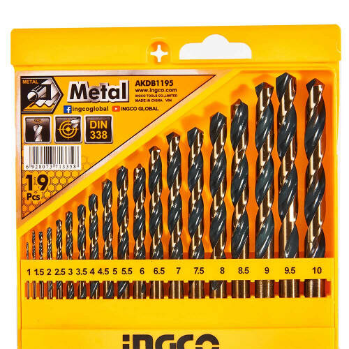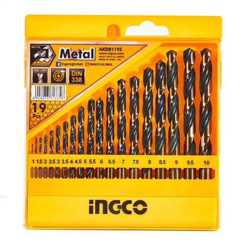 Набір свердел по металу INGCO містить 19 предметів, що дозволяє