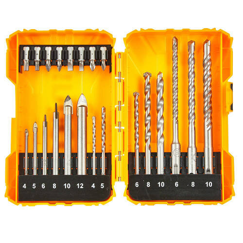 • Різноманітність інструментів: Включає біти для викрутки, свердла для бетону, скляні свердла та бури SDS plus, що дозволяє виконувати різноманітні роботи без необхідності купувати додаткові інструменти.