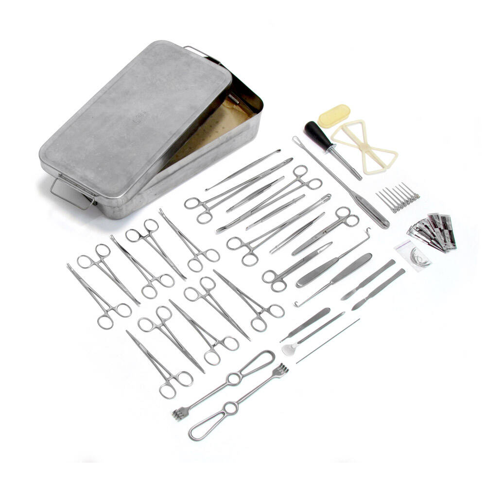 Набір призначений для забезпечення повного оснащення ветеринарного хірурга в умовах клініки або виїзної практики. Завдяки великому асортименту інструментів, цей комплект дозволяє виконувати як стандартні, так і складні операції: зупинку кровотеч, розсічення тканин, фіксацію, зондування, накладання швів тощо.