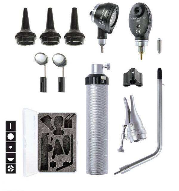 Набір KaWe BASIC C10 / E15 призначений для огляду вух, очей, носових порожнин і гортані у собак, котів, дрібних тварин, а також у польових і клінічних умовах. Оптимальний вибір для ветеринарних лікарів загальної практики, офтальмологів і отоларингологів тварин.