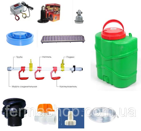 Набор для брудера "МАКСИМУМ" с терморегулятором, лампой ИК, патроном, системой ниппельного поения, кормушкой, поилкой под банку, баком для воды 10 л, врезкой в бак, краном, штуцером, шлангом - №6