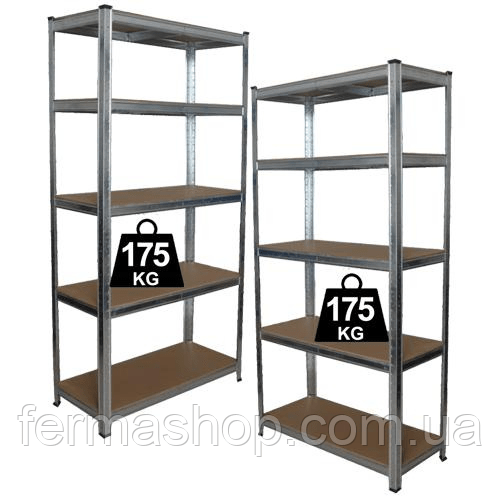 175 кг на полку и до 875 кг на весь стеллаж гарантирует надежность