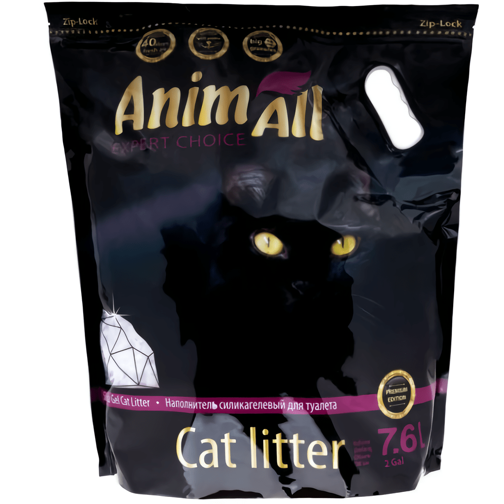 Силікагель ТМ AnimAll це висушений гель полікремнієвої кислоти (SiO2), який хімічно складається з тієї ж сполуки, що і звичайний пісок, але є високопористим тілом, тому має величезну площу поверхні (800 м²/1 г). Завдяки цій властивості силікагель має унікальну абсорбуючу (вбираючу) здатність. Волога і запах зникають у силікагелі AnimAll миттєво, але сам наповнювач ніколи не перетворюється на в'язку масу і не прилипає до котячих лап, а отже, не розноситься по дому.