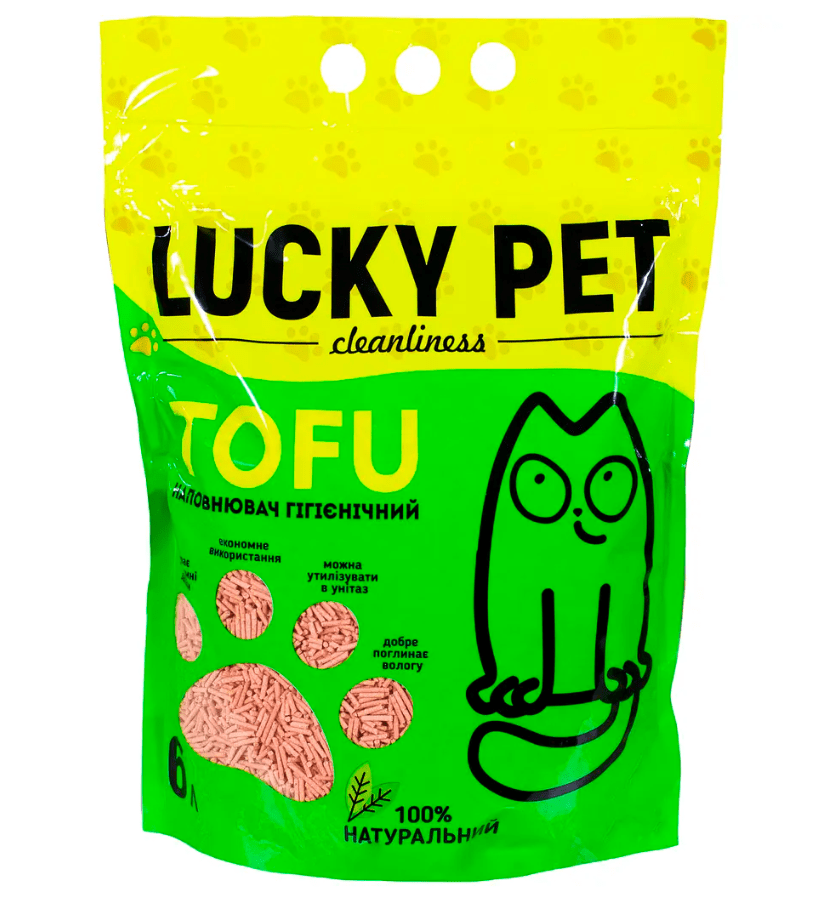 Наповнювач для котячого туалету Лакі Пет Lucky Pet тофу з ароматом лаванди 6 л (2.6 кг)