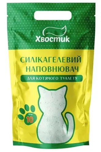 Силікагель — це гігієнічний наповнювач, він чудово справляється з будь-якими бактеріями, підтримуючи чистоту в будинку та охороняючи здоров'я кота. В середньому один пакет 10 л силікагелевого наповнювача Хвостик розрахований на 6 тижнів для одного кота. На цей час ви забуваєте про неприємний запах і зайвий клопіт по догляду за домашньою твариною. Дрібні зелені гранули додають силікагелю Хвостик естетичності і є універсальними як для котів, так і для кішок.