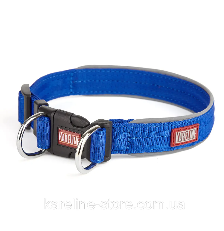 Нашийник "KARELINE Keeper" нейлоновий з пластикової пряжкою і світловідбиваючим кантом, 15 мм 240-340 мм (Синій)