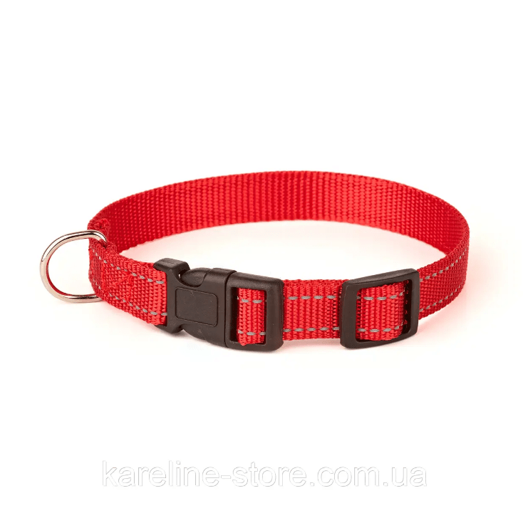Нашийник "KARELINE Keeper" нейлоновий з пластикової пряжкою і світловідбиваючим кантом,25 мм 350-520 мм (Червоний)