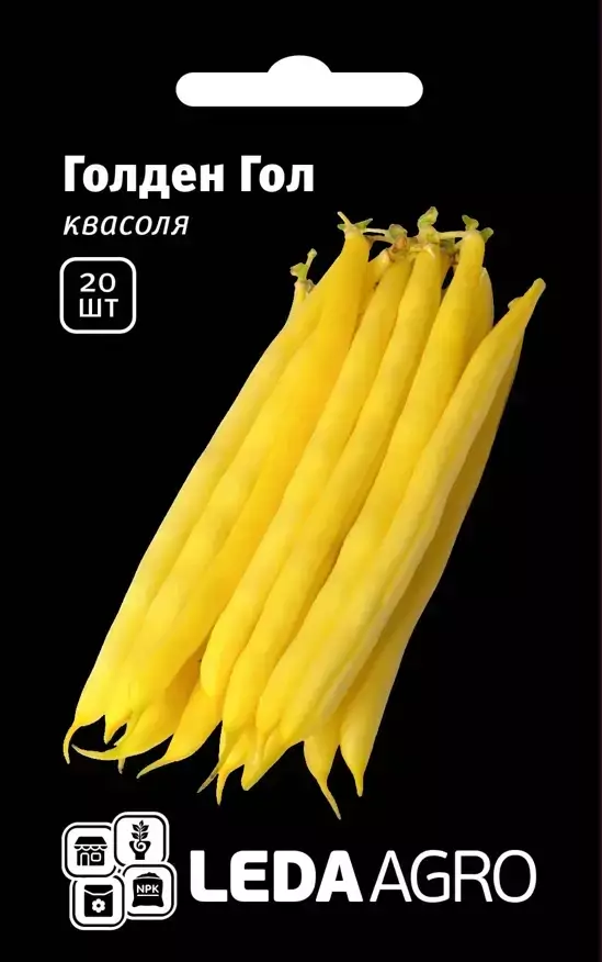 Характеристика: рослина кущова, дуже продуктивна, пластична, з відмінною здатністю регенерувати після стресових впливів. Має міцний імунітет і вирізняється значною завантаженістю стручками. Квасоля спаржева Голден Гол має довгі, рівні стручки яскраво-жовтого кольору, довжиною близько 14-16 см. На смак - ніжні, приємні, без волокон, дуже поживні.