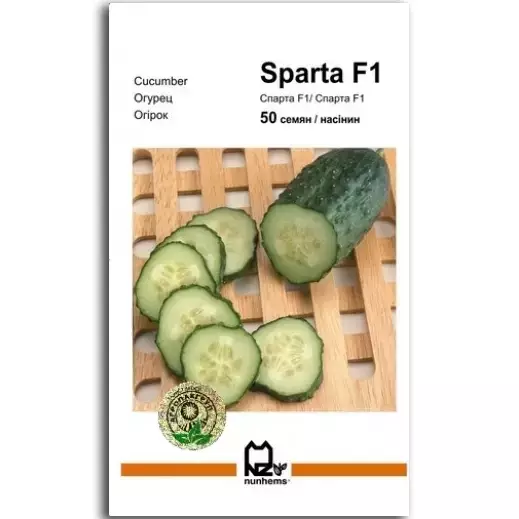 Спарта F1 — надранній високозручний гібрид огірка, бджолинозапилюваний. Тип — корнішон. З початку плодоносіння і впродовж усього вегетаційного періоду, дає стабільно високий урожай.