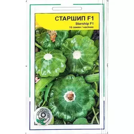 Старшип F1 — ранній високоурожайний гібрид патисону темно-зеленого кольору. Забезпечує високий вихід товарної продукції. Має тривалий період збирання врожаю.