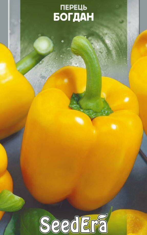 Ранньостиглий сорт. Період від сходів до початку стиглості 90-110 днів. Кущі висотою 55-65см. Плоди великі, масою 200-250г, конусоподібної форми, довжиною 12-15см, діаметром 8-9см, жовто-помаранчевого забарвлення. Товщина стінок 6-8мм.