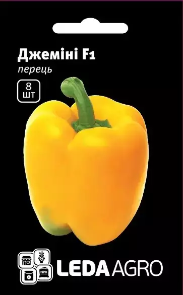 Насіння перцю Джеміні F1, 8 насіння — ранній (75 дн), кубовидно-подовжений, жовтий, солодкий LEDAAGRO