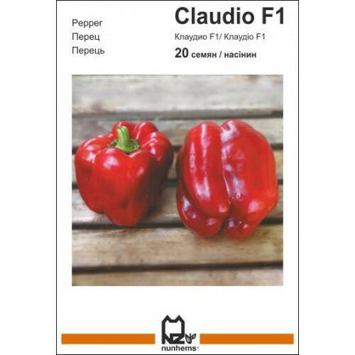 Насіння перцю Клаудіо F1, 20 насінин — ранній 72-80 днів, кубовидно-подовжений, червоний, солодкий, Nunhems