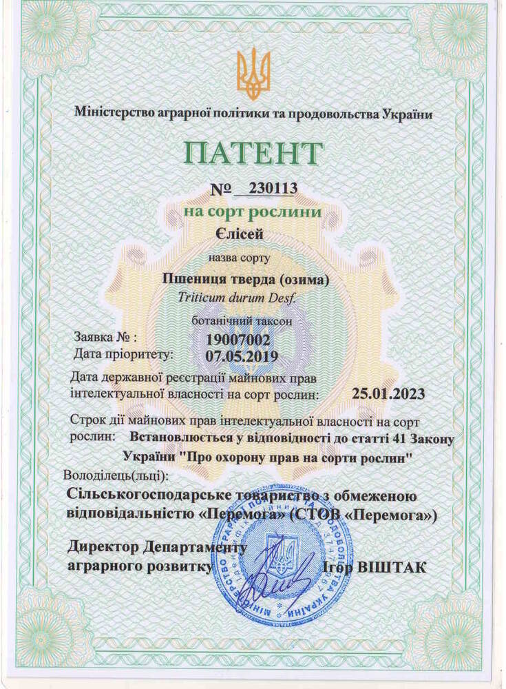 Оригінатор: Сільськогосподарське товариство з обмеженою відповідальністю "Перемога" (СТОВ “Перемога”)