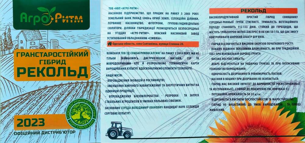 Якісне насіння гібриду Рекольд, фракції Преміум