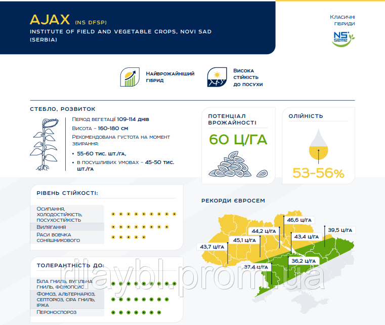 Переваги гібрида Аякс (Ajax, NS DFSP): високий потенціал врожайності
