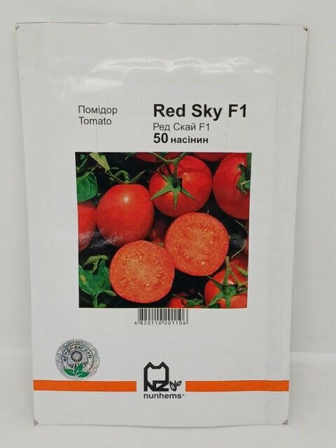 Томат Ред Скай F1 (Red Sky F1) – середньоранній гібрид, детермінантного типу, виведений фахівцями нідерландської насіннєвої компанії Nunhems Zaden. Рекомендується вирощувати у відкритому ґрунті. Рослина кущова, з середньою силою росту і високою концентрацією дозрівання. Має імунітет до вертицильозного в'янення та інших поширених хвороб пасльонових.