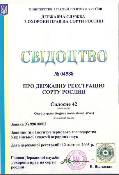 В Державному реєстрі сортів рослин України з 2003 р.