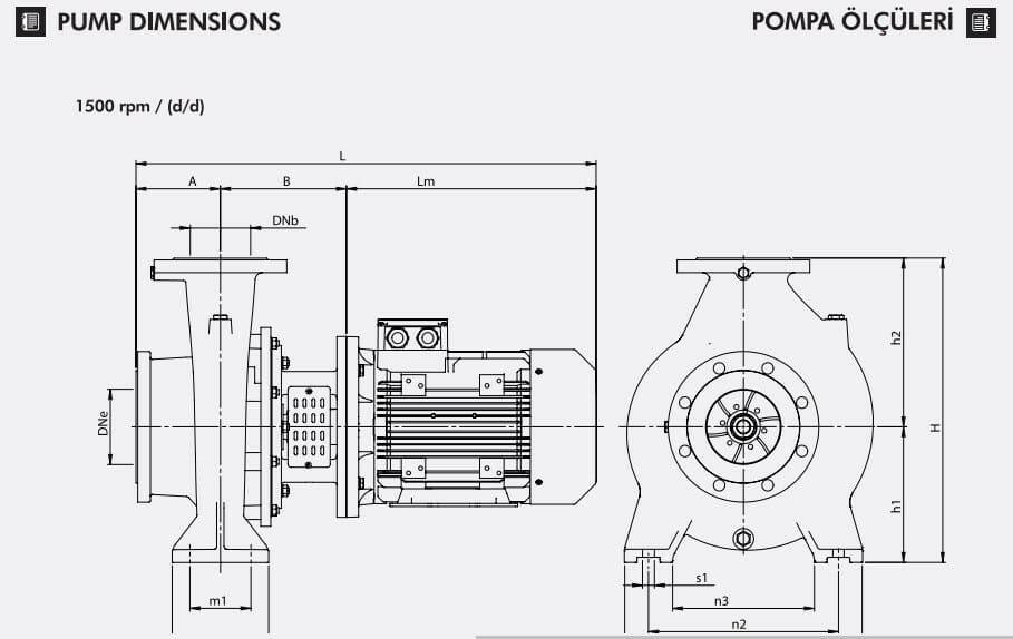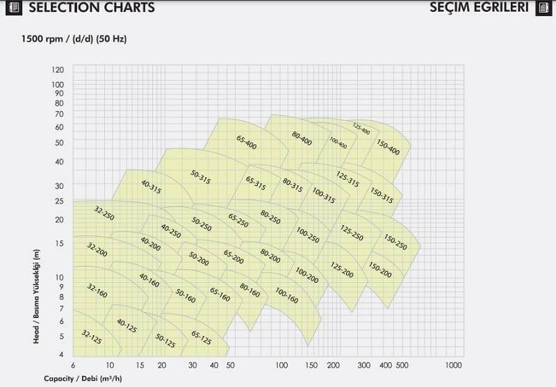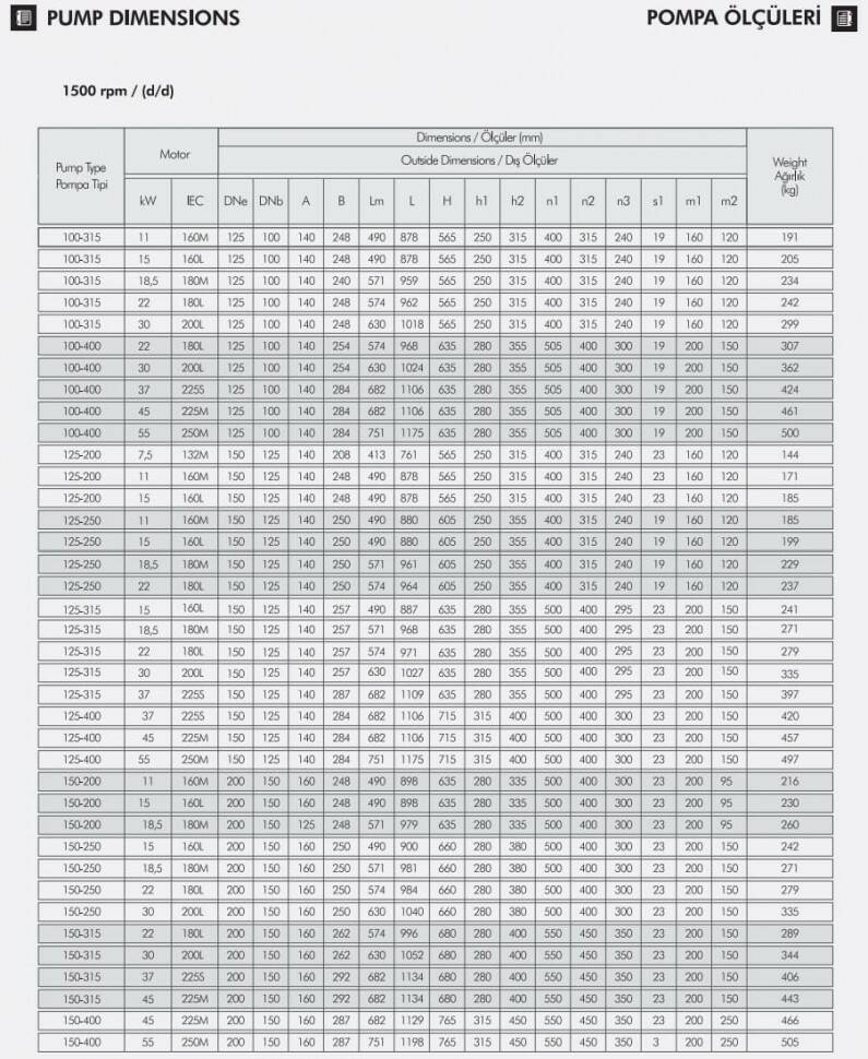 Технічні дані: Нагнітальний фланець: DN32 ... DN150. Потужність: до 550 м³/год. Висота : 105 м. Швидкість: 1450-3600 об/хв (50 Гц-60 Гц). Робоча температура: -10°C’ до +105°C. Тиск в корпусі (Pmax): 10 бар (16 бар).